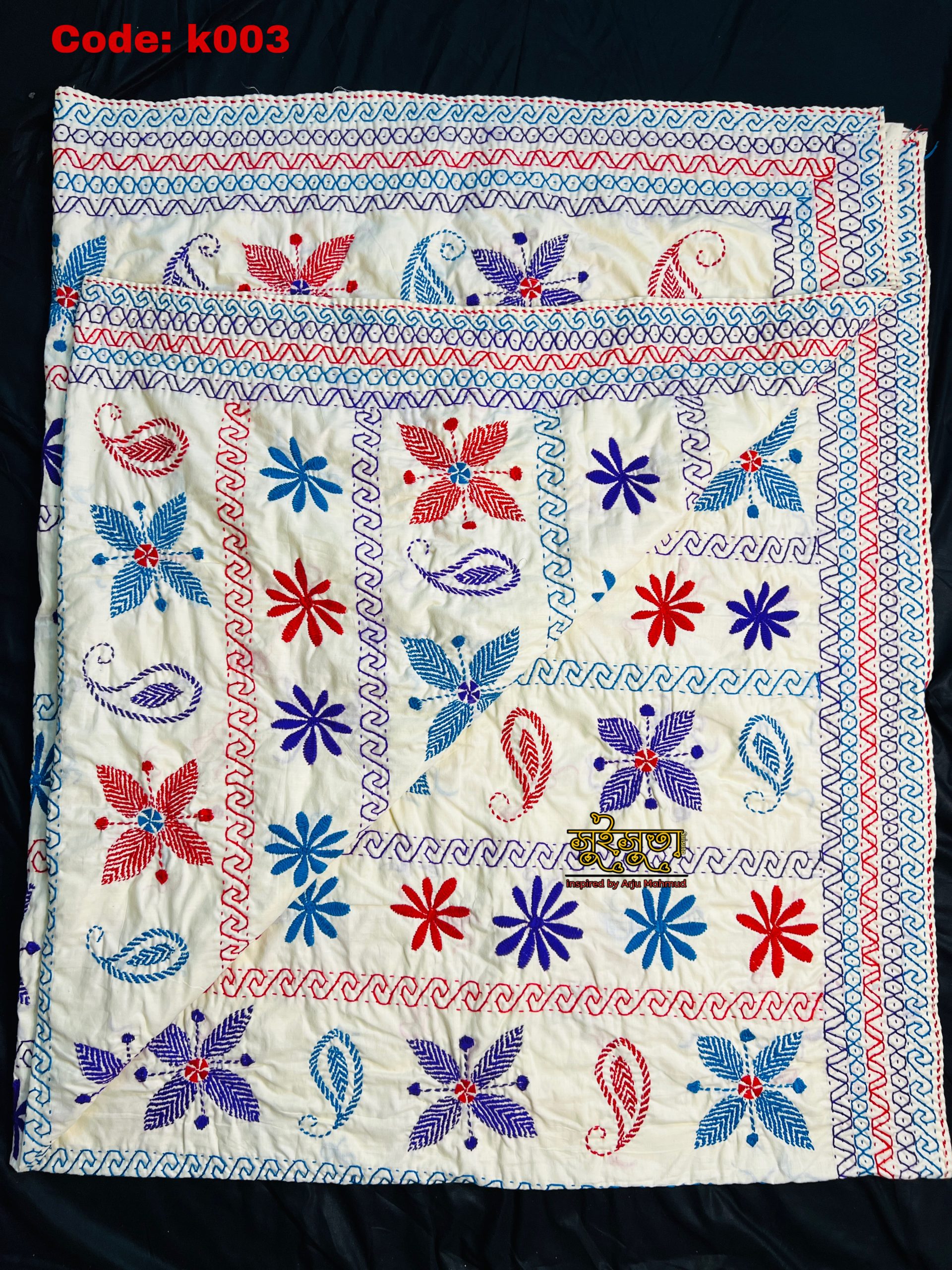 We make customized Nakshi Kantha here, made to order, which is completely handmade according to your choice, design, and color.